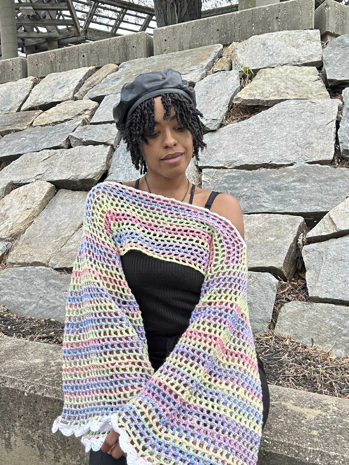 Crochet shrug that is great year round- in the office or at the theater, you will be the focal point!
